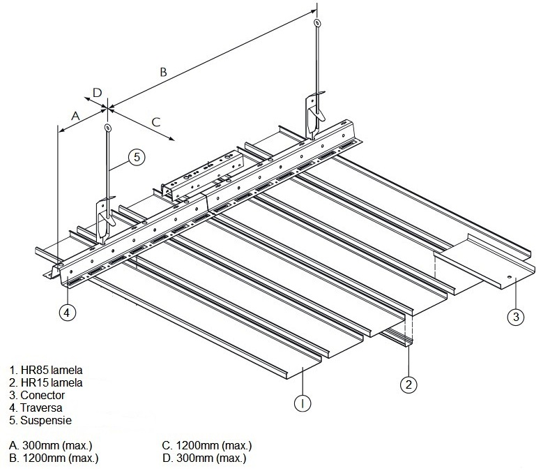 Sistemul de tavane suspendate cu design german „H” formază deasupra panourilor un spațiu pentru instalarea conductelor de aer, cablurilor electrice și a altor comunicații necesare pentru încăpere. Panourile sunt detașabile, ceea ce oferă accesul deplin la echipamentele și comunicațiile instalate deasupra tavanului.