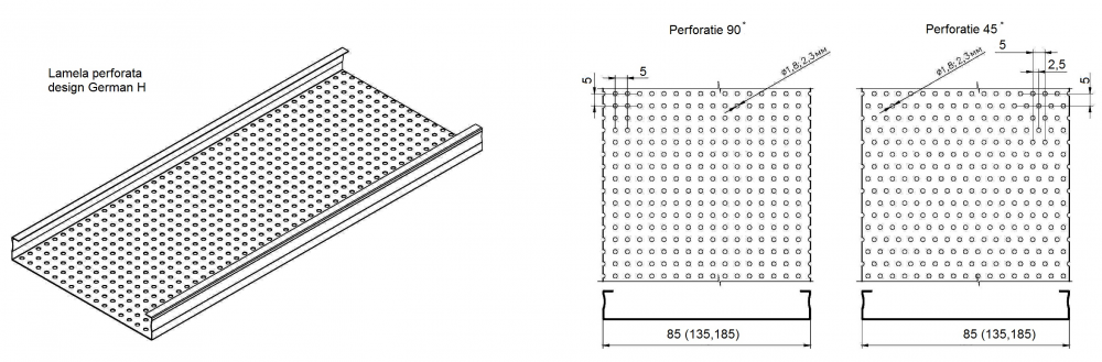 Pentru a asigura un control acustic optim în încăpere, lamelele pot fi perforate. În calitate de funcție standard, lamelele perforate sunt prevăzute cu un material nețesut fonoabsorbant, lipit pe suprafața interioară a lamelei.
