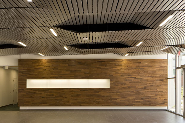 Cu ajutorul panourilor perforate cu membrană textilă nețesută, lipită pe suprafața interioară a lamelelor este asigurat un nivel optim de control acustic în încăperi.